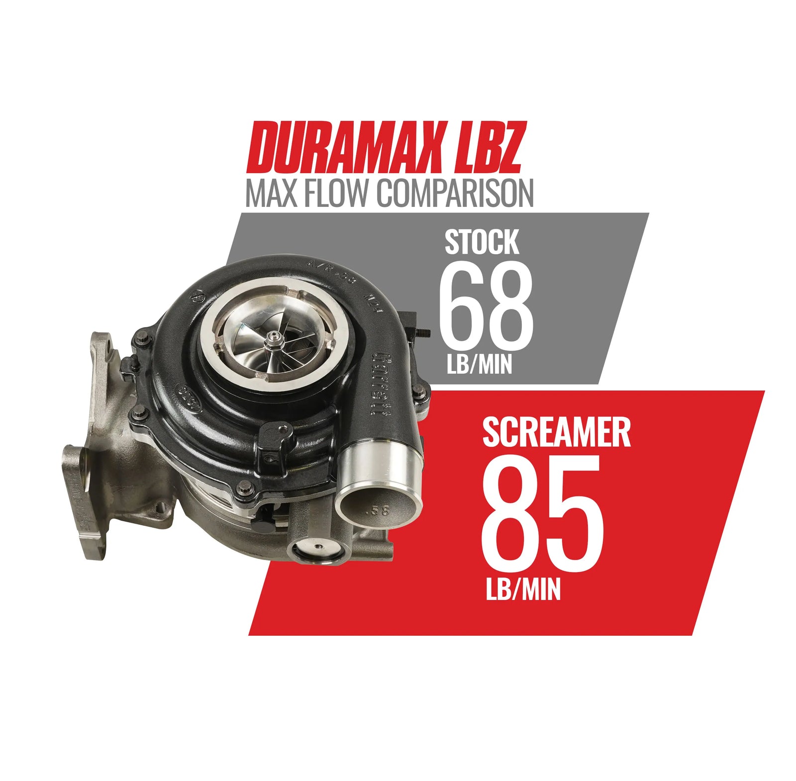 If you're looking to maximize the performance out of your 2004.5-2010 GM 6.6L Duramax, BD Diesel offers the perfect upgrade with their Screamer 65MM turbo. Utilizing modern, high-effecient turbo technology, it delivers increased airflow without sacrificing low end response. This turbocharger is capable of handling higher boost pressures, which allows for a notable increase in horsepower potential. In real-world testing, the Screamer turbo demonstrated an improvement in power output, along with a reduction in peak exhaust gas temperatures. This means your Duramax can produce more power without experiencing dangerously high temperatures, improving both performance and reliability. Furthermore, this turbocharger is designed to be fully compatible with any "box" tuner. Whether you're looking for improved towing capability, quicker throttle response, or more aggressive performance, the Screamer turbo delivers the kind of gains that make a real difference on the road or the track. Whether you're looking for improved towing capability, quicker throttle response, or more aggressive performance, the BD Diesel Screamer Turbo delivers gains that make a difference.