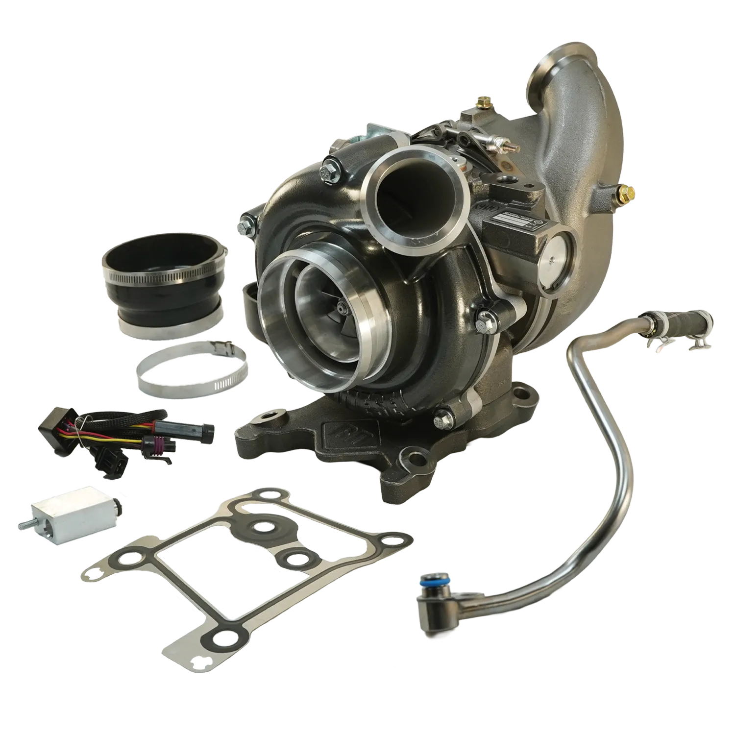 Say goodbye to the problematic and small GT32 Single Sequential Turbocharger (SST) on the early model Ford 6.7L Powerstrokes by replacing it with BD's complete Screamer Stage 1 Retrofit Turbo solution. Utilizing modern turbo technology, the Screamer Stage 1 delivers up to 66lb/min of increased airflow without compromising on low end response and everything you require is included to drop right in place of the old unit, no extra pieces needed. The Screamer Stage 1 Retrofit turbo will require tuner such as the Edge Insight to ensure no faults codes are set. For trucks wanting to push past 500hp, we recommend the Screamer Stage 2 Retrofit kit (1045825).