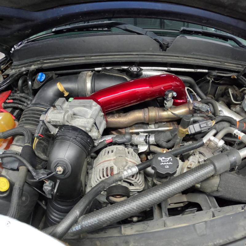 The 3" High Flow Passenger Side Upper Crossover Intercooler Pipe for 2011-2016 LML Duramax provides a 20% increase in size over the OEM part allowing for less restriction in air flow and and an increase in efficiency and turbo spool up. Eliminates resonator for improved appearance and more aggressive turbo and engine sound. For use with the OEM Y-Bridge and connects to factory throttle valve and grid heater. Finished in your choice of custom powder colors. This pipe is compatible with stock trucks requiring no additional modifications, upgrades, or tuning for installation.