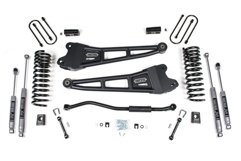 Level out and take your 2013-2018 RAM 3500 diesel powered truck with this 3-inch radius arm lift kit from BDS Suspension. Designed to improve stance, performance, and capability, this kit includes everything necessary to set your truck up right with clearance for up to 35" tires.
