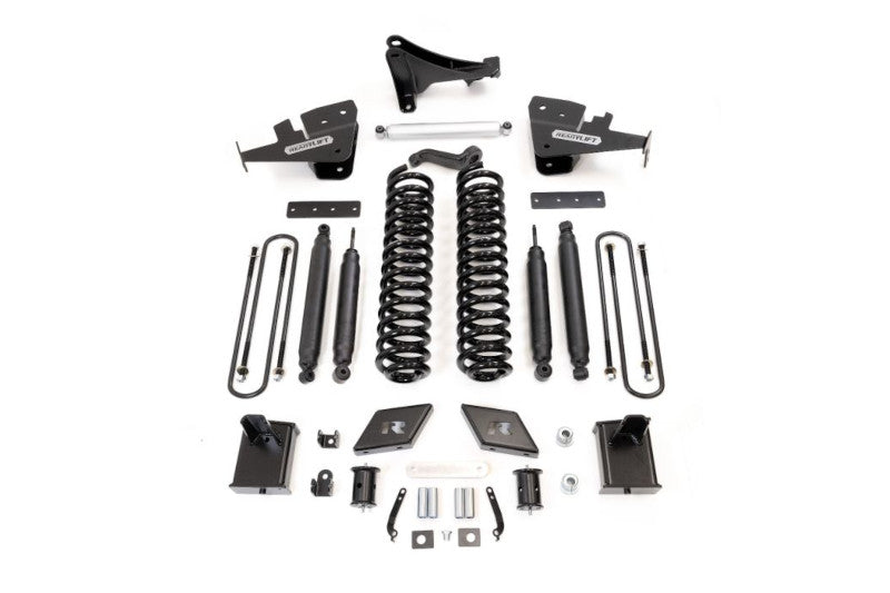 ReadyLIFT Suspension is now offering two new 7" Coil Spring Lift Kits made to fit 2017-2022 Ford Super Duty F250 4WD trucks. The 49-27700 includes our front and rear SST3000 performance shocks. The kit has our popular cast front track bar relocation bracket, heavy-duty radius arm drop brackets, and rear fabricated blocks with integrated bump stop tangs. This gives Super Duty owners an excellent alternative for lifting their trucks to fit larger tires. This new 7" lift system will raise the 2020-2022 4WD Super Duty truck 7" (2017-2019 SD 6.5"). The coil spring system allows for increased tire sizes and widths along with providing improved ground clearance on the street or trail. Super Duty customers will love the head-turning stance! This premiere big lift kit allows for up to 38" tall tires.The ReadyLIFT 7" Coil Spring Lift Kit system for 2017-2022 Ford Super Duty trucks also includes model-specific brake line extension brackets, our time-tested bump stop extension brackets, and new front sway bar frame mount extension brackets to keep the factory sway bar at the proper geometry. Super Duty wants rugged looks and a smooth but controlled ride, the new ReadyLIFT 7" Coil Spring Suspension Kit System is the perfect solution.
