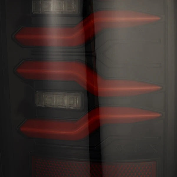 These Ram Truck LUXX-series LED tail lights are with four switchable LED tubes with red LED as parking light, brake light and amber LED as sequential turn signal lights. In between the light tubes, we add diffusers lens with switchable LED for brake light and sequential turn signal light in order to output more obvious indication during daytime. Our LUXX-series LED tail lights come with our signature activation light feature, which is a sequence when you turn on your parking light, and gives your Ram an unique style. Our Ram Truck LUXX-series LED tail lights come with activation light feature when you turn on the parking light. The light tube comes with switchback feature with parking, brake and in red LED, and sequential turn sign in amber LED. The top center part is applying LED with diffusers for more obvious parking (red LED), brake (red LED) and signal indication (amber LED) in the daytime. The bottom center part is applying white LED for reverse light indication.