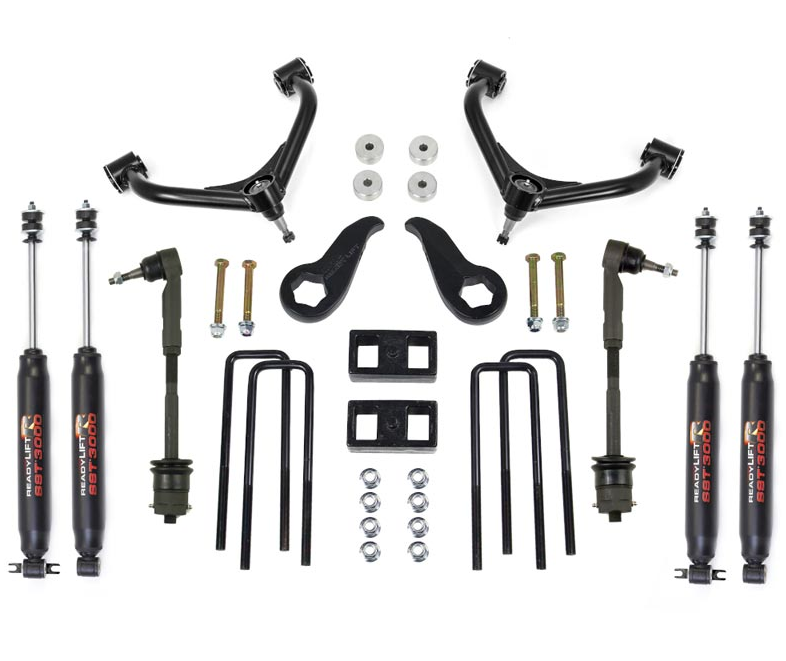 ReadyLIFT Suspension is excited to offer 2011-2019 Chevy and GMC 3500HD truck owners a lift solution that won't break the bank nor permanently modify your truck. This is a true bolt-on Lift kit! The 69-3522 SST Lift Kit by ReadyLIFT takes our 69-3521 kit one step further by creating a "Tow Package" kit that includes a 2.0" rear lift block to provide additional rake for towing and hauling. This kit will lift the front of your new HD truck a maximum of 3.5 inches! This kit is for use on 2011-2018 3500HD trucks WITH Single Rear Wheels and Factory Tow Package Leaf Springs OR Dually Rear Wheels. This awesome new SST Lift Kit for new Chevy Silverado 3500HD trucks includes a pair of tough heavy-duty tubular steel upper Control Arms engineered to match the strength of your truck.