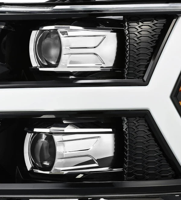 Elevate the front-end appeal of your 2007-2014 Silverado 2500/3500 with the AlphaRex LUXX-Series LED Projector Headlights in Jet Black. These headlights are not just an aesthetic upgrade; they're engineered for durability, compliance, and improved lighting performance. The AlphaRex LUXX-Series LED Projector Headlights feature vertical dual projectors, each equipped with a Y-shape LED tube that serves as both the Daytime Running Light (DRL) and signal light. These advanced headlights also include an activation light feature, which provides a running light show when you unlock your Silverado, making your truck stand out even before you hit the road. Additionally, they offer sequential turn signal lights, enhancing your vehicle's style when changing lanes or making turns. Furthermore, the AlphaRex LUXX-Series Projector Headlights are designed for both style and functionality, with two projectors for high and low beam functions. The top projector handles low beam lighting, while the bottom projector takes care of high beam illumination. These projectors use LED chips developed by AlphaRex's own factory, guaranteeing top-tier performance and efficiency.