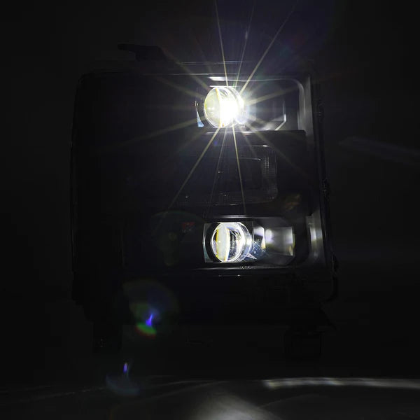 Elevate the appearance and lighting performance of your 2016-2018 Silverado 1500 with the AlphaRex LUXX-Series LED Projector Headlights in Black. These headlights are designed for both style and functionality, providing a seamless blend of aesthetics, durability, and compliance with safety standards. One of the standout features of these LUXX-Series headlights is the application of the signature 4th gen LED tube, serving as the Daytime Running Light (DRL) and sequential turn signal. This unique feature not only enhances your vehicle's appearance but also provides a distinctive 4th gen look to your 3rd gen Silverado. The LUXX-Series headlights also include the activation light feature, which treats you to a captivating running light show when you unlock your Silverado. These lights are not just about style; they also offer improved functionality with white DRL light and amber sequential turn signals. Safety and compliance are paramount, and these headlights fully meet SAE/DOT FMVSS108 regulations, ensuring that they are both road-legal and reliable. They come with a dual projector design featuring AlphaRex LUXX projector lenses. The top projector is dedicated to low beam illumination, while the bottom projector handles high beams. These high/low beam projectors use LED chips developed in AlphaRex's own factory, delivering impressive lighting output with efficiency.