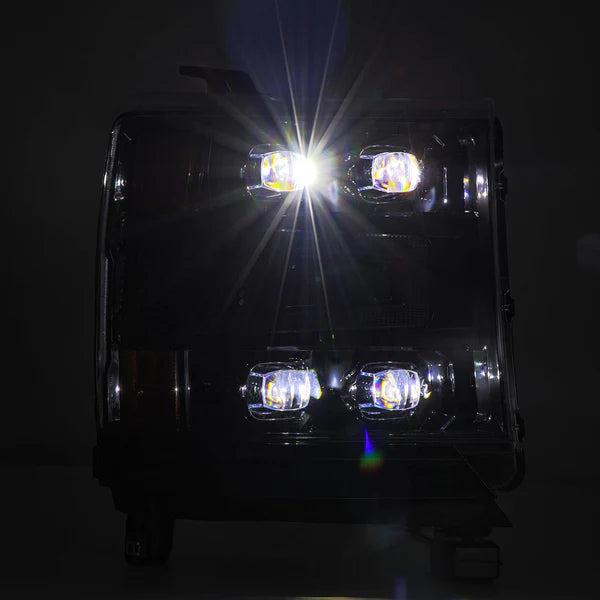 Elevate your Chevrolet Silverado 1500's style and safety with the AlphaRex NOVA-Series LED Projector Headlights in Alpha Black. Crafted with precision and attention to detail, these headlights are a perfect blend of form and function. The durable polycarbonate lenses are not only robust but also feature an anti-fog and anti-yellowing coating, ensuring optimal visibility even in adverse weather conditions. What sets these headlights apart is their quad projector design, where the top two projectors serve as low beams, and the bottom two projectors deliver high beams. The full LED light output is not only energy-efficient but also provides superior illumination on the road, enhancing your driving experience and safety. Furthermore, compliance with SAE and DOT FMVSS108 regulations ensures that these headlights meet the highest quality and safety standards, giving you peace of mind while on the road. Furthermore, they're certified to ISO-9000, ISO-9001, and ISO-9002, reflecting our commitment to product excellence.