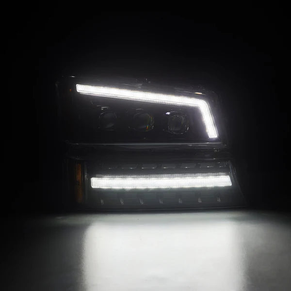 If you're looking to give your 2003-2006 Chevrolet Silverado a massive performance upgrade, look no further than the AlphaRex NOVA-Series LED Projector Headlights! These premium aftermarket headlights add a ton of style and capability to your truck's front-end in a simple and effective package. Each one of the NOVA Series headlights features 3 of AlpahRex's patented 3D ice-cube projectors, using Osram black flat LED chips for the low-beam projectors and LUXX LEDs for the dual beam projectors. With these advanced lenses, you'll experience a high-quality light output and improved illumination over stock to help better guide you through the night. Additionally, the projection cut-off line is tailored to meet all SAE/DOT regulations, providing optimal visibility while ensuring compliance with industry standards. These lights also come equipped with a light tube that functions as both DRL and turn signal lights on both sides, and can be easily configured to display either a white or amber Daytime Running Light. Better yet, the headlights come with an activation light feature that illuminated when you turn your on Silverado, helping to transform your ride into a custom truck.