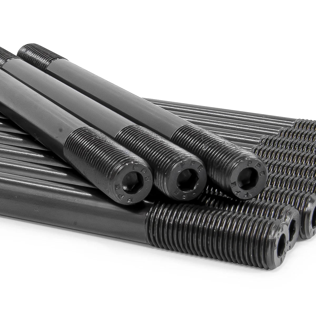 Built to handle extreme pressures, the PPE 218034300 Head Stud Kit offers superior head gasket sealing under high boost conditions. Each stud is manufactured from 8740 Chromoly and finished with a black oxide coating to resist corrosion and wear. The thread-rolled design increases tensile strength and reduces fatigue, making this kit ideal for aggressive builds running over 45 psi of boost.