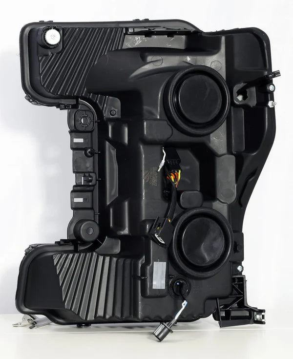 The AlphaRex NOVA Series for Ford Super Duty trucks combines smart optical design with long-term durability. These headlights feature an impressive eight-projector layout, with the bottom four handling low beam function and the top four handling high beams. Powered by Osram Black Flat LED chips, the light output is focused, crisp, and rated at a bright 6000K color temperature that improves visibility in any driving condition. AlphaRex’s Ice Cube 3D lens system ensures the beam pattern meets American left-hand drive regulations and reduces glare for other drivers. The lenses are made from polycarbonate and treated with anti-fog and UV-resistant coatings to maintain clarity over time. Everything is housed in a high-quality jet black casing that’s sealed tight against the elements. Installation is plug-and-play and includes a DRL module to enable all lighting features with no cutting or splicing. With full DOT and SAE compliance, these headlights are ready for everyday use while offering standout style and serious lighting performance.