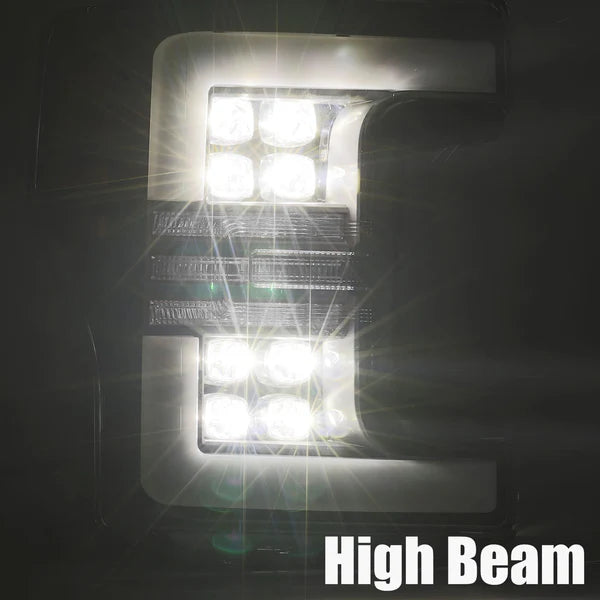 If your 2017–2019 Super Duty already looks tough, it's time to give it lighting that matches. The AlphaRex NOVA Series Chrome LED Headlights bring a custom look with factory-inspired fitment, combining premium lighting performance with bold visual upgrades. With a full bank of eight LED projectors and chrome housing that blends perfectly with OEM trim, these headlights give your truck a refined yet aggressive edge. The integrated LED light bar runs as a daytime running light and flips to a dynamic sequential turn signal when you need it, keeping your presence known on the road. The activation light sequence fires up when you unlock the truck, adding a clean, high-end touch every time you walk up. It even includes AlphaRex’s signature claw-style amber signal lens for a unique look that sets your truck apart. Whether you're rolling into a job site or pulling up to a weekend event, these headlights give your Super Duty the kind of finish it deserves.