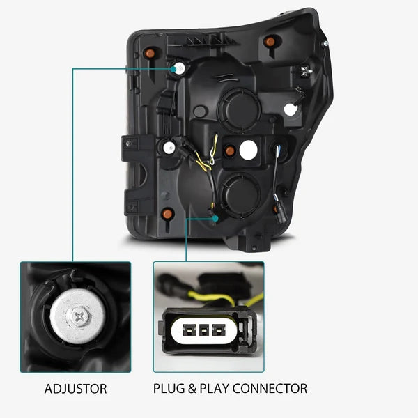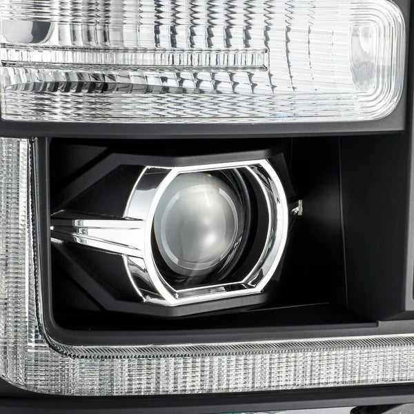 The AlphaRex LUXX Series headlights don’t just look sharp, they perform even better. Each unit houses dual LED projectors, with the top focused on crisp low beams and the bottom delivering powerful high beam illumination. AlphaRex’s in-house LED chip technology ensures long-lasting brightness and efficiency, while their precision-cut projector lenses maintain a clear, controlled beam pattern that meets U.S. LHD regulations. The built-in clear lens in the center mirrors the 4th and 5th gen Super Duty’s turn signal layout, adding both functionality and a familiar aesthetic. A polycarbonate housing and anti-fog coating help keep visibility high no matter the weather, while the anti-yellowing protection ensures these lights stay clear for years to come. They’re plug-and-play ready with a dedicated DRL module, so installation is simple and hassle-free. Backed by SAE and DOT compliance, these headlights deliver the reliability, clarity, and modern style your truck deserves.