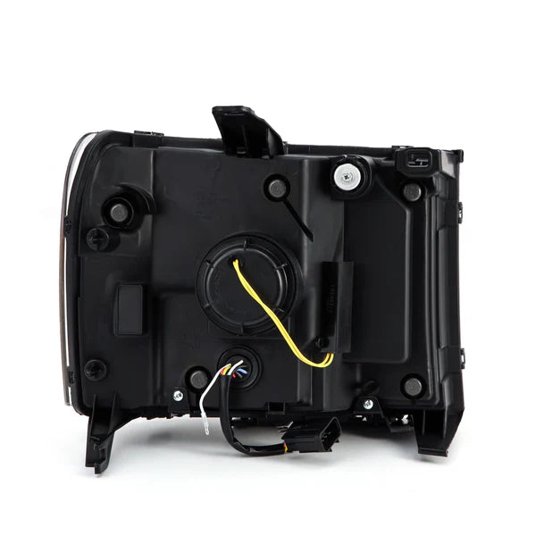 [The AlphaRex PRO Series projector headlights aren’t just designed to look good, they’re made to perform in everyday conditions with durable construction and dependable lighting. These headlights use a single dual beam projector setup with H7 halogen bulbs that handle both low and high beam functions, making maintenance simple and affordable. The beam pattern is sharp and focused, designed specifically for American-spec left-hand drive vehicles so you get proper light throw without blinding oncoming traffic. The polycarbonate lenses are treated with an anti-fog layer for better clarity in wet or humid weather, along with a UV-resistant coating that protects against yellowing over time. Inside, the LED light tube wraps around the projector and acts as both a daytime running light and a sequential turn signal, offering safety and style in one package. Installation is plug-and-play, meaning you can bolt them in and wire them up without needing to cut or modify anything. For truck owners who want reliable lighting with added visual appeal, these lights strike a great balance between performance and price.
