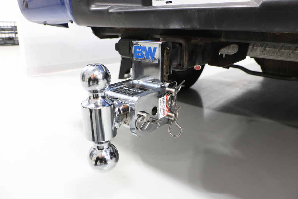 The B&W TS10033C Chrome Tow & Stow Dual Ball Hitch is engineered for serious towing versatility and durability. It features a dual-ball system with 2-inch and 2-5/16-inch sizes, giving you towing options without changing mounts. Designed to fit any standard 2-inch receiver, the hitch offers 3 inches of drop and 3.5 inches of rise, with height adjustments in 1-inch increments to match different trailer heights and maintain a level ride. The entire assembly is constructed from high-yield steel tubing, ensuring dependable strength even under a 10,000-pound gross trailer weight and a 1,000-pound tongue weight. Its solid stainless steel pins lock everything securely into place, and the hitch can be easily locked into the receiver to deter theft. The polished chrome finish not only enhances corrosion resistance but adds a premium look to your setup. When not in use, the hitch folds under the bumper to keep it out of the way, reducing the chance of shin bruises or rear-end damage in tight spots. It's a smart, rugged solution that blends adjustability with reliability.
