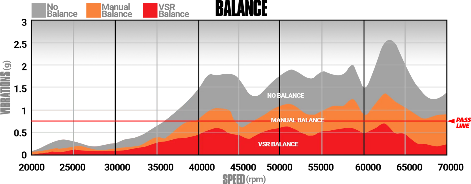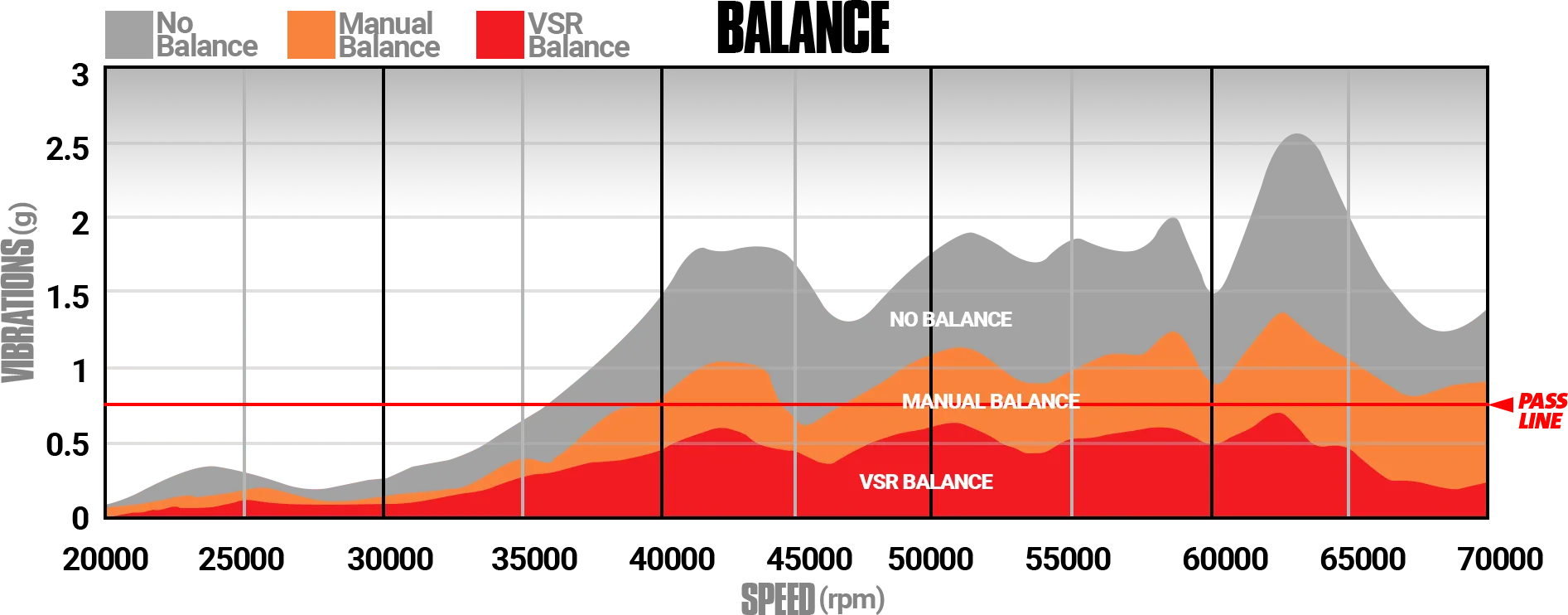 New technology 64mm "mixed flow" larger turbine wheel increases turbine flow and efficiency