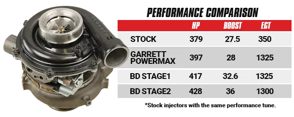 Under the hood, the BD Screamer Stage 1 turbo is built to outperform stock units in both power delivery and long-term durability. It features a billet 6x6-blade 61.4mm compressor wheel paired with an 82mm exducer and 88mm extended tips, designed to increase airflow and boost response. On the exhaust side, a 13-blade 66.45mm turbine wheel with taller vanes helps maintain efficiency while reducing backpressure and cutting down exhaust gas temperatures. This combination makes it easier to keep your engine running cooler and more efficiently under load. BD's proprietary vane control technology ensures the turbo operates within its optimal performance zone, improving turbine behavior especially during towing or hard acceleration. The unit is VSR high-speed balanced to reduce vibration and wear, giving you peace of mind under heavy use. Best of all, this turbo is a direct bolt-on replacement for the factory GT37, complete with gaskets and hardware to secure all three mounting points. With a 24-month parts warranty and a proven record of performance, it's a smart upgrade for Powerstroke owners who want dependable, emissions-legal power.