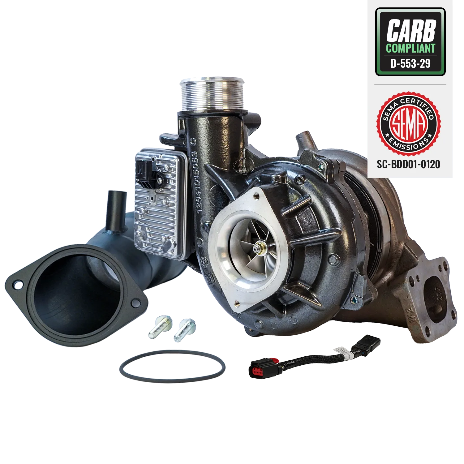 BD Diesel ensures performance and reliability with their Screamer Turbo. Manufactured using OEM housings, the L5P Screamer turbo is machined to accept the new larger 66.2mm compressor and 67mm turbine wheels which will allow for better airflow (up to 80 lb/min) and lower exhaust gas temperatures. This turbo works best on trucks with supporting modifications such as custom tuning to maximize efficiency.