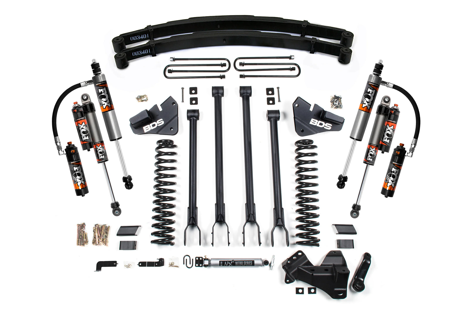 If you're ready to turn your 2017-2019 Ford F250 or F350 Super Duty 4WD Gas into a true off-road machine, the BDS 4 Inch Lift Kit with 4-Link Conversion and FOX 2.5 Performance Elite Shocks is the upgrade you've been waiting for. This isn't just about lifting your truck, it's about dialing in performance, control, and a mean new stance. The 4-link conversion gives you tighter handling and better suspension geometry, especially when the terrain gets unpredictable. You’ll notice the difference immediately when taking corners or navigating rough trails. Plus, with the ability to fit up to 37-inch tires, this kit gives you the clearance and capability to go deeper into the wild than ever before. The FOX 2.5 Performance Elite shocks bring adjustable control to match whatever you’re throwing at your truck, from towing to trails. Whether you're hauling gear, hitting the backroads, or just want a tougher look in the city, this kit is built to perform every single day.