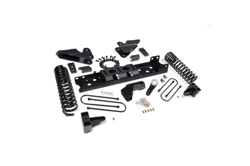 Take your RAM 3500 to new heights with this 5.5" standard lift kit from Zone Offroad. Kits include everything needed from full length coil springs and radius arm drop brackets to steering correction and rear lift to level the stance. Get the look, performance, and capability your truck deserves with clearance for up to 37" tires. Vehicle Fitment: