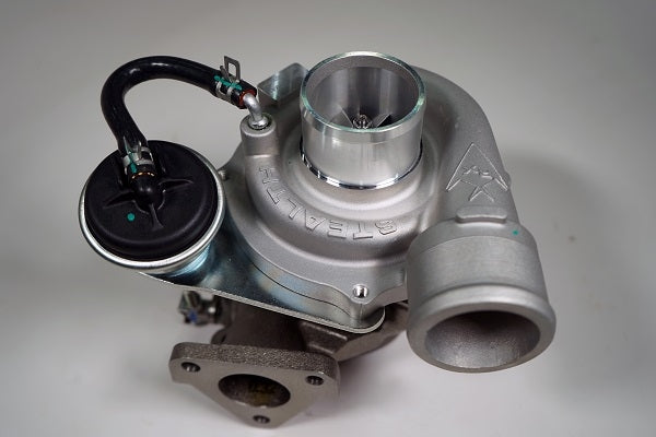 The factory turbo on the 2.5L diesel engine found in the Mahindra Roxor is an efficient turbocharger for the factory rated 62 HP but quickly runs out of steam when pushed over 100HP. The larger compressor and turbine wheel assembly in the RX41 shine where the factory turbo falls off. The RX41 continues to move air efficiently over 100HP. This means cooler intake air, lower exhaust gas temperatures, less smoke, and longer life out of your tuned engine.