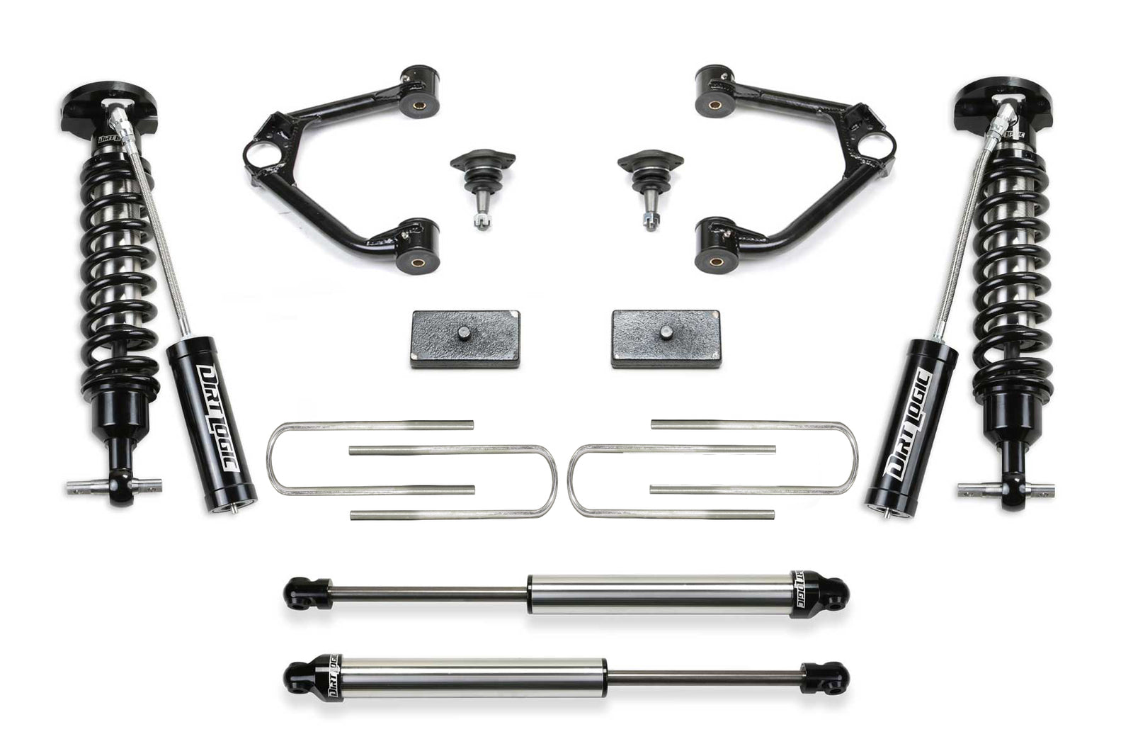 The Fabtech K1223DL system is engineered to raise your 2025 Chevy Trail Boss or GMC AT4 1500 by 1.5 inches while preserving factory geometry and optimizing suspension performance. Up front, the system replaces the stock setup with 2.5-inch Dirt Logic coilovers featuring external reservoirs for increased cooling and control under hard use. These coilovers are tuned specifically for the weight and balance of the GM 1500 platform, providing a noticeable improvement in response and ride feel. At the rear, Fabtech includes matching 2.25-inch Dirt Logic monotube shocks for consistent damping, paired with 1.5-inch lift blocks and new U-bolts to level the stance. Extended travel upper control arms come equipped with heavy-duty ball joints, allowing for smooth articulation without binding at full droop. This kit is designed exclusively for gas V8 models and will not fit trucks with Super Cruise, adaptive ride control, or standard cab configurations. OEM wheels and tires cannot be reused, so aftermarket fitment is required to take full advantage of the upgraded clearance. With premium components, precise tuning, and no cutting or welding needed, this system delivers real-world performance that holds up under pressure.