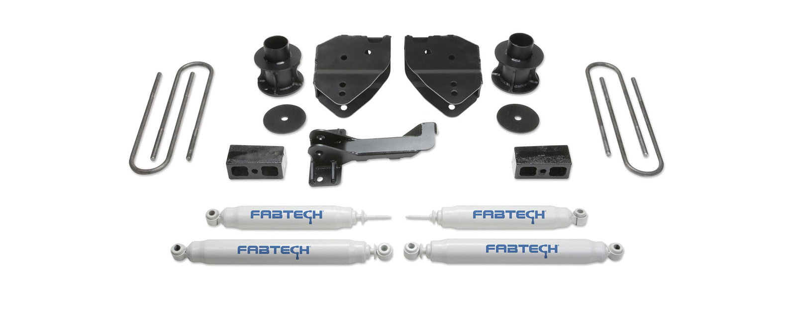 This Fabtech 4 Inch Budget System is a purpose-built entry-level kit engineered to deliver functionality without unnecessary complexity. It maintains your factory ride quality by keeping the OEM coil springs and enhancing lift through precision-cut steel upper spacers. Radius arm drop brackets are included to preserve proper caster settings, ensuring your truck handles well despite the added ride height. In the rear, lift blocks and extended u-bolts work together to level out the stance and handle the increased demands of towing or hauling. The design reflects Fabtech’s commitment to balancing cost and performance, especially for truck owners who want lift height without sacrificing drivability. The system is optimized for 35 inch tires with basic inner fender trimming, making it ideal for everyday street use and weekend trail runs. It’s a smart suspension solution that keeps installation straightforward while still enhancing capability.