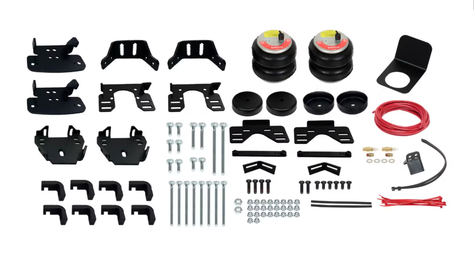 The RED Label series is Firestone’s toughest line of light-duty air springs, and the 2716 kit proves it with every detail. Designed specifically for Ford F-250 and F-350 trucks from 2017 to 2025, this kit features four-layer commercial-grade rubber bellows that mirror the quality found in Firestone’s Airide heavy truck products. The high-strength steel alloy brackets are coated to resist rust and corrosion from harsh environments like winter road salt and de-icing chemicals. Every bolt in the kit is a grade 8 fastener, ensuring long-term strength where it matters most. The air springs install between the frame and rear suspension, with no drilling required, and the process takes about two hours start to finish. Manual air adjustment allows you to fine-tune pressure between 5 and 150 PSI, making it easy to level out uneven loads or manage shifting cargo. This setup is also fully compatible with in-bed hitches, so it integrates seamlessly into your existing towing system. Everything needed for install comes in the box, making this a smart, well-engineered solution for serious truck owners.