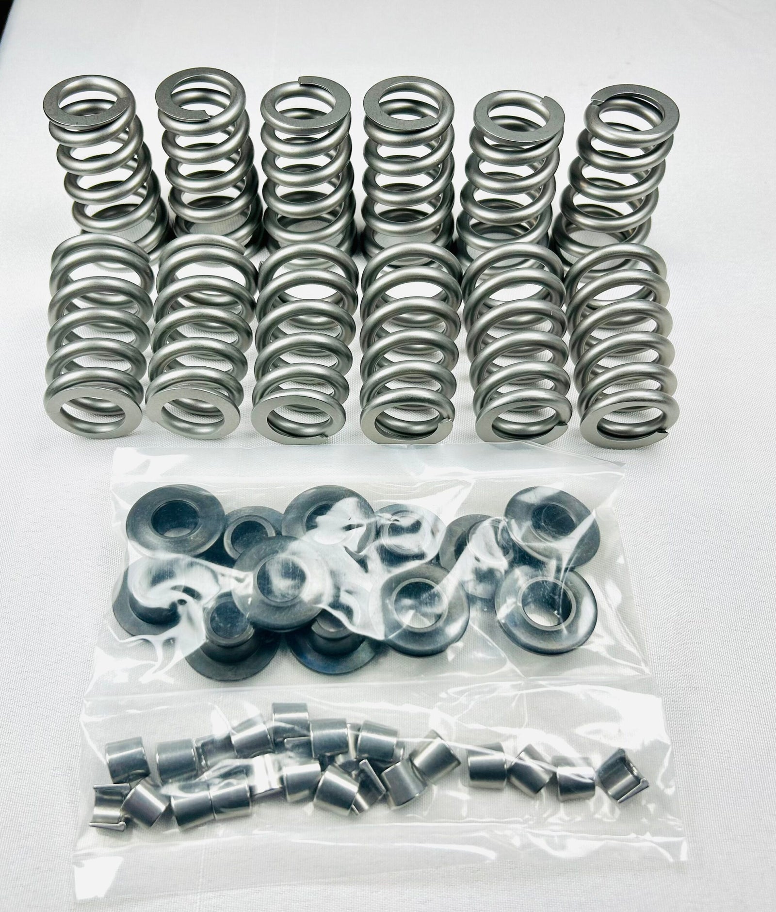The 07-S-001 valve springs from Hamilton Cams are built for the demands of modified 12-valve Cummins engines, specifically those running mild to moderate cams and stock-size valves. Their conical beehive design isn't just for looks, it reduces harmonics and adds spring stability at higher engine speeds, making them a solid choice for builds up to 4,500 RPM. The increased seat pressure of 155 pounds ensures the valves stay firmly closed under heavy boost and backpressure, preventing blow-by and power loss during combustion. These springs combat two major enemies of diesel performance: valve float and intake reversion, both of which can seriously affect engine efficiency and reliability. They’re especially useful in setups that see hard acceleration or sustained throttle, where traditional springs may struggle to keep up. Each set includes matching retainers and locks for easy installation and reliable performance. For builders who want precision control without jumping straight to dual springs, this is an ideal middle ground that delivers results.