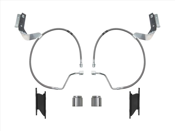 When you lift your truck, the right supporting parts are just as important as the springs or shocks you choose. That is where the ICON 4.5" Front Box Kit comes in. Designed specifically for 2023-2025 Ford Super Duty 4WD trucks, this kit ensures your suspension works smoothly while protecting vital components. The sway bar drop brackets eliminate binding through the full range of travel, keeping steering response predictable both on and off the road. Extended stainless steel brake lines replace the factory setup to prevent stretching or damage, so you can wheel with confidence knowing your braking system is safe. Heavy duty bump stop spacers are also included to keep suspension compression in check, giving you added control over rough terrain. Built to take abuse, every component is precision engineered and backed by ICON’s Limited Lifetime Warranty. This kit provides the peace of mind that your lift is built on a solid foundation.