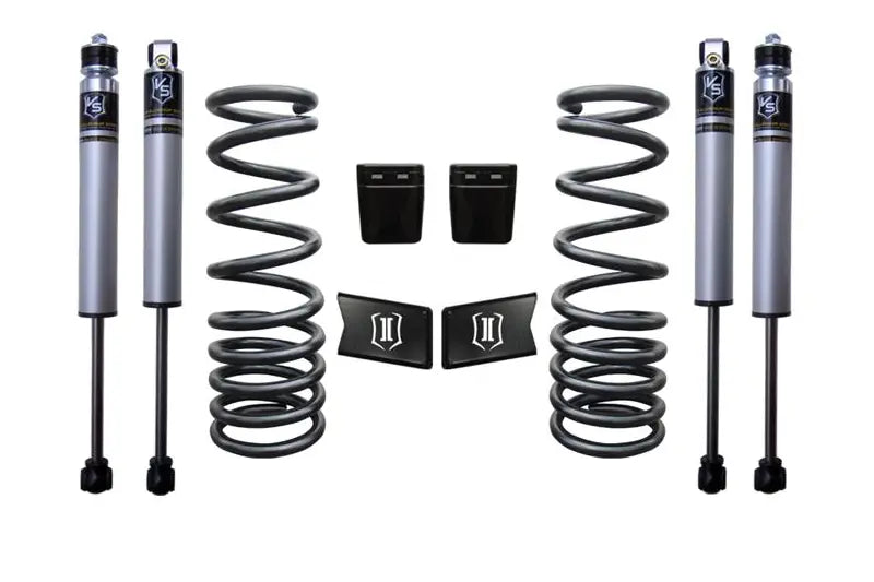 2003-2012 Ram 2500/3500 2.5 Inch Stage 1 Suspension System is a great option for those looking to improve their suspension without breaking the bank. This entry level system is not only designed to make your truck look better, but also adds enhanced performance that is felt both on and off road. The Stage 1 System is made up of high quality suspension components which includes dual rate coil springs, polyurethane bumpstops, sway bar drop brackets, and the ICON 2.0 Aluminum Series internal reservoir shocks. Each suspension component and shock included in this Stage 1 Suspension package is stringently tested to ensure that your Ram 2500/3500 suspension is operating efficiently. If you're looking to dip your toes into higher grade suspension performance, be sure to pick up the ICON Stage 1 Suspension System from Alligator Performance!