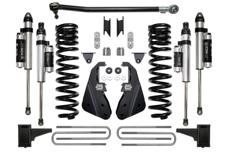 This ICON Vehicle Dynamics 4.5” suspension system is a great way to lift your 4WD 2017-UP Ford F250/350 Super Duty while drastically improving ride quality and performance. The Stage 3 system is perfect for on-road and off-road use including towing, job site duty and spirited off-road adventure. ICON's Stage 3 System is comprised of dual rate coil springs, radius arm drop brackets, adjustable track bar, 5" block kit, and ICON CDC Valve 2.5 Series front and rear piggyback reservoir shocks. With the endless hours ICON has spent testing and tuning our suspension components and shocks as a complete package, you can be rest assured you have the best suspension solution on the market.