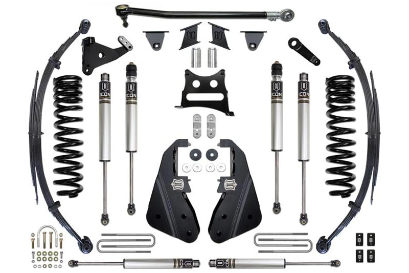 If you're ready to give your Super Duty a serious upgrade, the ICON 7" Stage 1 Suspension System is the kit that brings it all together. Whether you're towing on the job, cruising the highway, or exploring back roads, this system delivers a smoother, more controlled ride without compromising toughness. It’s built for the kind of driver who demands more from their truck and wants performance that matches its presence. The combination of dual-rate coil springs and progressive leaf springs helps maintain ride quality while giving your truck the clearance and stance it deserves. Paired with ICON’s precision-tuned 2.0 Aluminum Series shocks, every bump and curve is absorbed with confidence and control. You'll notice better handling, reduced body roll, and the ability to run up to 37-inch tires for a bold, functional lift. This kit is perfect for diesel-powered trucks and tuned to handle real-world conditions where strength and ride quality matter most.