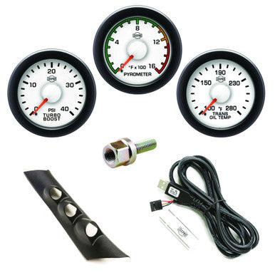 The R50013R EV2 3-Gauge Kit is engineered for precision and reliability on 1994–1997 Dodge 5.9L Cummins-powered trucks. With microprocessor-controlled stepper motors, each gauge delivers smooth and accurate needle movement across a 270-degree sweep, allowing you to catch even minor fluctuations in real time. The pyrometer includes a high-temperature thermocouple and lead wire, making it perfect for tracking exhaust gas temps under load. The boost and transmission temperature gauges come with their own sensors and complete wiring harnesses, all weather-sealed with weather-pack connectors for long-lasting durability in tough environments. The white-faced gauge design offers excellent readability, while the black bezels give a subtle, aggressive edge that fits into any build style. LED backlighting ensures clear visibility at night and blends well with OEM dash lighting. With everything factory-calibrated and ready for install, there’s no need for signal converters or tuning modules. This kit is the all-in-one solution for drivers who demand both form and function from their gauge setup.