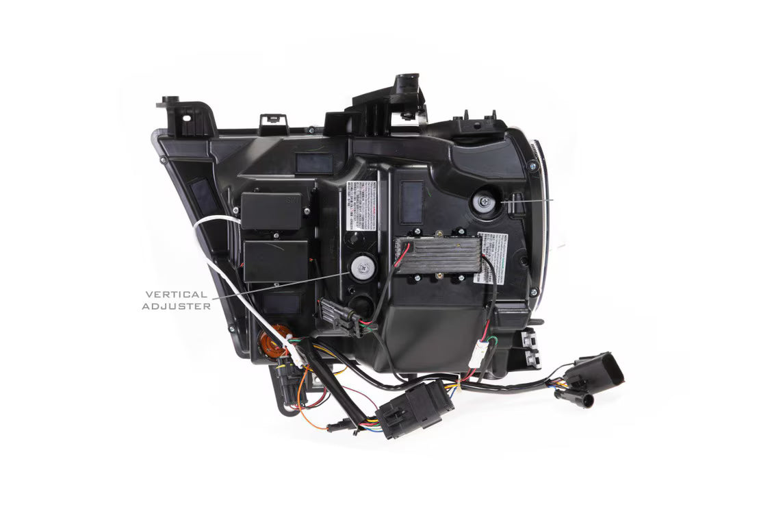 The Morimoto LF523-ASM XB LED Headlights are engineered to deliver clean, powerful light output while maintaining complete street legality. Each housing is equipped with four precision projectors powered by Osram 5000K LED chips, offering a wide, well-defined beam that complies with SAE, DOT, and FMVSS108 standards. The system uses a rugged PPS plastic housing paired with UV-resistant polycarbonate lenses to resist fading and withstand daily driving conditions. Morimoto also designed these lights to integrate flawlessly with your factory wiring, regardless of whether your truck originally came with halogens or OEM LED headlights. Built-in resistors prevent CANBUS issues, flickering, or dashboard warning lights, no coding or splicing needed. The plug-and-play harness makes installation straightforward, and everything is pre-wired for ease of use. For drivers who care about long-term reliability and light performance backed by real engineering, these headlights are a proven solution that delivers form and function.