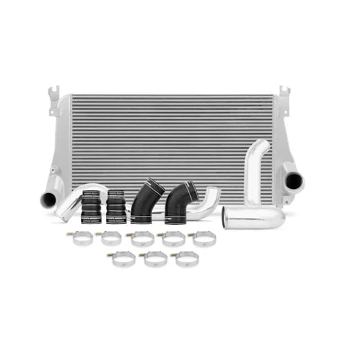 If your 2002–2004 Duramax is working harder than ever—whether towing heavy loads or making big power on the street—you know how important it is to keep intake temps under control. That’s where the Mishimoto Silver Intercooler Kit comes in. This isn’t just an upgraded intercooler—it’s a complete airflow system built to handle heat, boost, and horsepower in one clean, performance-driven package. At the heart of this kit is Mishimoto’s performance intercooler, featuring a high-capacity bar-and-plate core with cast aluminum end tanks. This setup delivers a significant drop in intake temps and reduced exhaust gas temperatures (EGTs), which helps prevent power loss and keeps your engine safer under load. Whether you’re pulling a fifth wheel or pushing the limits on a tune, this intercooler is built to perform.
