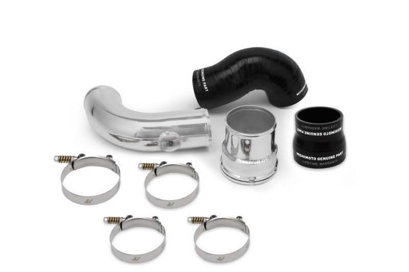 Don't get stuck stranded on the side of the road with a broken plastic factory cold-side intercooler pipe! Mishimoto has developed a cold-side intercooler pipe and boot kit for the 2011-2016 6.7L Powerstroke after hearing countless stories of truck owners being left with a busted factory cold-side pipe that burst under boost. Upgrade to the Mishimoto Powerstroke performance parts kit for increased reliability, durability, and performance. The Mishimoto Powerstroke cold-side pipe is constructed of mandrel-bent aluminum with a polished finish. The engineers at Mishimoto designed a CNC-machined quick-disconnect flange and IAT sensor housing to allow for an easy install in under 2 hours. This intercooler pipe and boot kit is direct fit, retaining all factory emissions components and does not require the use of a tuner. The Mishimoto Powerstroke cold-side pipe eliminates restrictive bends in the factory pipe, allowing for improvements in airflow, power, and EGTs. This kit includes Mishimoto Silicone Boots with DuraCore™ technology. Mishimoto DuraCore™ technology is the synthetic material that comprises the innermost layer of all Mishimoto Silicone Diesel Boots. Compared to normal silicone, DuraCore™ provides superior resistance to heat, pressure, fuel, and oil. This effectively increases the life of our boots by preventing leaks and blowouts. To add even more reliability, this kit includes Mishimoto Stainless Steel Constant-Tension T-Bolt Clamps for accurate and consistent holding power. The Mishimoto Ford 6.7L Powerstroke Cold-Side Intercooler Pipe and Boot Kit is the perfect addition to the Mishimoto 6.7L Powerstroke Aluminum Primary Radiator. Save time and money by replacing both the hot-side and cold-site intercooler pipes with the Mishimoto 6.7L Powerstroke Pipe and Boot Kit which includes both sides. This intercooler pipe kit is made in the USA and like all of our Powerstroke performance parts includes the Mishimoto Lifetime Warranty.