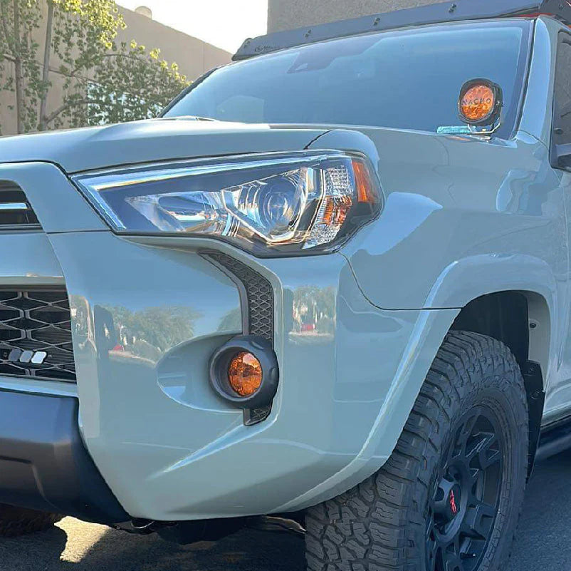 If your stock fog lights are struggling in the dust, rain, or trail haze, the NACHO Amber Fog Multi Beam Kit is exactly what your Bronco needs. This complete plug-and-play kit swaps out your factory fogs for a powerful amber setup that not only looks sharp but seriously improves your visibility in tough conditions. Designed for Gen 6 Broncos with factory plastic or capable bumpers, it includes two SAE-certified Quatro lights, custom brackets, and OEM connectors that hook right into your factory fog plug. That means no cutting, no splicing, and no guesswork, just clean install and immediate results. The warm amber output punches through dust and bad weather without bouncing back glare, making it ideal for off-road runs or group trail rides. You’ll also get a built-in trail running light function that gives your Bronco a standout glow when cruising or staging. It’s a sleek, functional upgrade that enhances both safety and appearance without complicating your setup.
