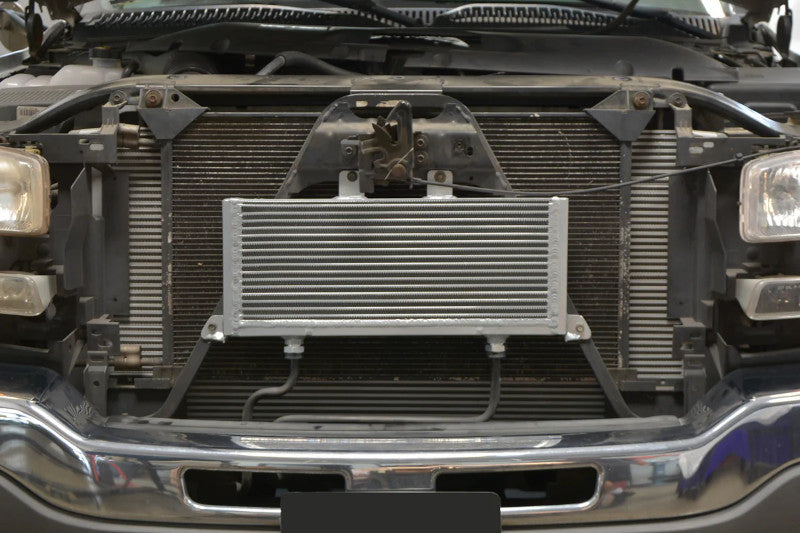 The Bar and plate style cooler is far superior to the OEM-style tube and fin cooler in terms of cooling performance. Within each repeating section, the internal staggered square-pattern fins divert the high-temperature transmission fluid and increase the heat-transferring surface area. The external louvered fins maximize the cooling effect of ambient air. Fits: 2001-2003 GM 6.6L Duramax w/ Allison Transmission Installation Instructions