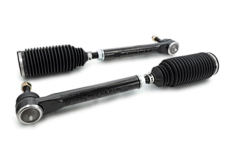 Do not exceed 500 PSI of pressure when applying grease, as this can damage the grease caps and cause tie rod failure, voiding your warranty. Additionally, overextending the tie rod angle might damage the inner tie rod or outer ball stud retaining assembly. This can result from steep tie rod–steering rack angles or the overextension of modified suspensions. These robust tie rods are designed to meet the most demanding steering needs, ensuring reliability and performance in every drive.