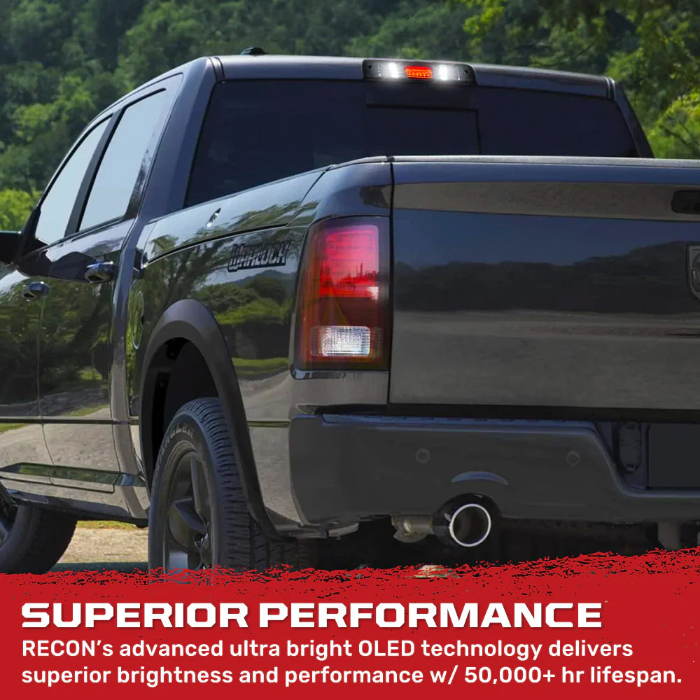 If you're tired of the basic factory third brake light on your RAM, the Recon 264112BKHP Ultra High Power LED 3rd Brake Light is a game-changing upgrade. Designed to fit 2010 to 2025 RAM 2500 and 3500 models, this smoked lens assembly instantly gives your rig a more aggressive, custom look. But it’s not just about style. At the heart of this light are ultra-bright OLEDs and powerful CREE XML white cargo lights, delivering unmatched visibility whether you're driving at night or lighting up a work area behind the truck. It’s a great way to make your RAM stand out while also increasing safety and functionality.