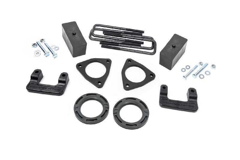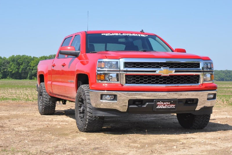 Off-Road Action has never been more affordable thanks to Rough Country's new 2.5-inch Suspension lift for '07 & Up GM 1500 Pickups. If you're looking for something more than a simple leveling kit, look no further! This new design utilizes our popular 2-inch Lower Strut Extensions combined with a set of strut spacers and rear blocks to achieve a total of 2.5-inch of lift - enough clearance to run up to a 285/70/17 tire - all at a price that won't break the bank! This kit includes a set of Fabricated 2-inch Rear Blocks to replace the OEM 1-inch block. Fabricated blocks offer a longer lifespan than cast blocks and are less susceptible to damage and the environment. Not only is this kit affordable, it's also easy to install, featuring a 100% bolt-on installation procedure with no need for a strut compressor to install (Excludes Stamped Steel Arms.) Lift your 1500 easily, efficiently, and cost effectively.