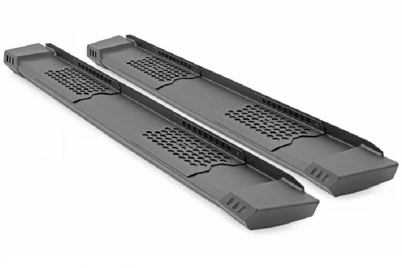 Swap out your skinny, factory running boards with Rough Country’s wider and more aggressive HD2 Running Boards! These beefy, cab-length running boards make it much easier to get in and out of your truck.